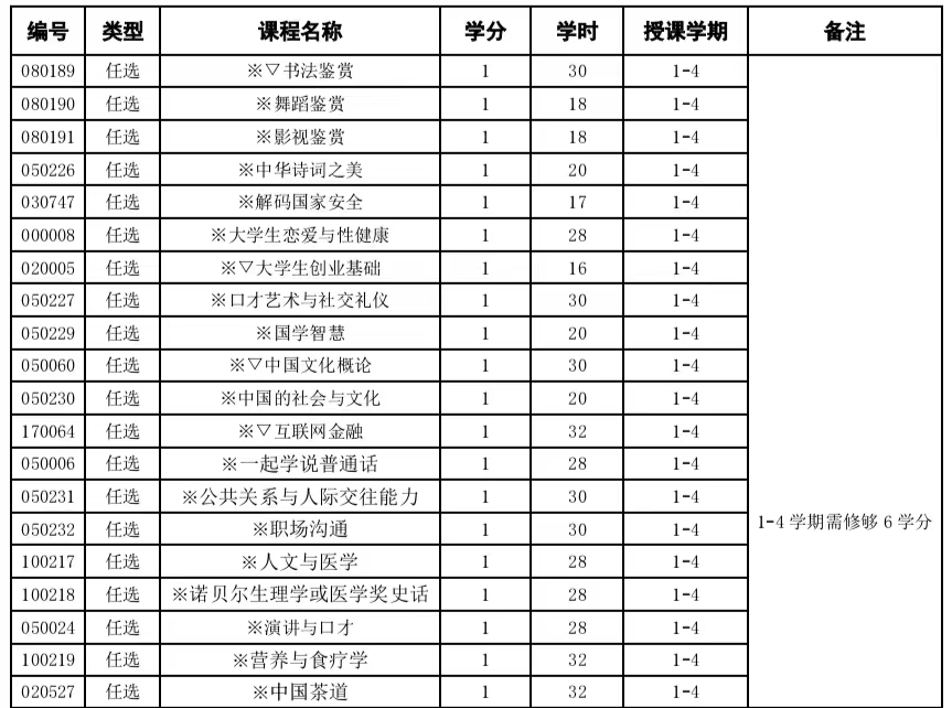 注:表中课程前面有※标志的为网络慕课课程,前面有※▽标志的为网络慕课课程和面授课程。