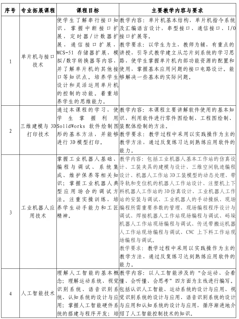 一般设置 6-8 门。包括机械基础、电工基础、电子技术、C 语言、传感器与检测技术、电气 CAD 与工程制图、智能制造基础与应用等。