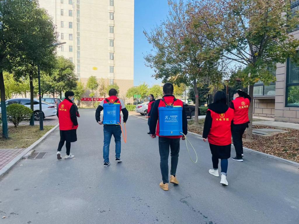 为了配合社区清除卫生死角和垃圾杂物,有效治理病媒生物孳生地,党员志愿者肩背消毒罐,对楼寓口、电梯厢、垃圾桶、道路两侧等地进行集中消杀。
