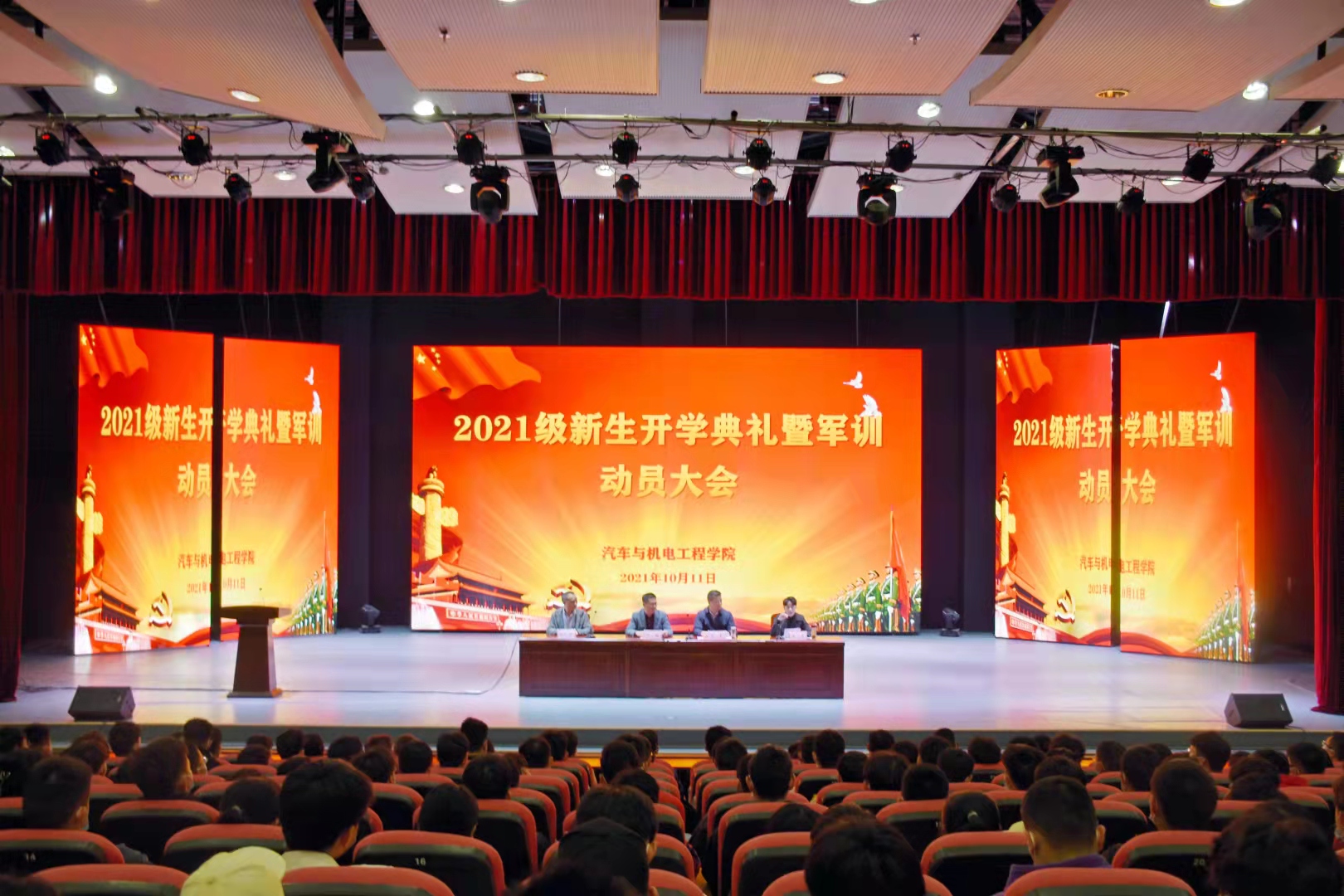 10月11日上午,hth平台在学校图书馆报告厅隆重举行了2021级新生开学典礼暨军训动员大会。党总支书记代翔、院长吕争、党总支副书记张礼涛、副院长曾勇及全体教职工、450名新生共同参加了典礼。典礼由曾勇主持。