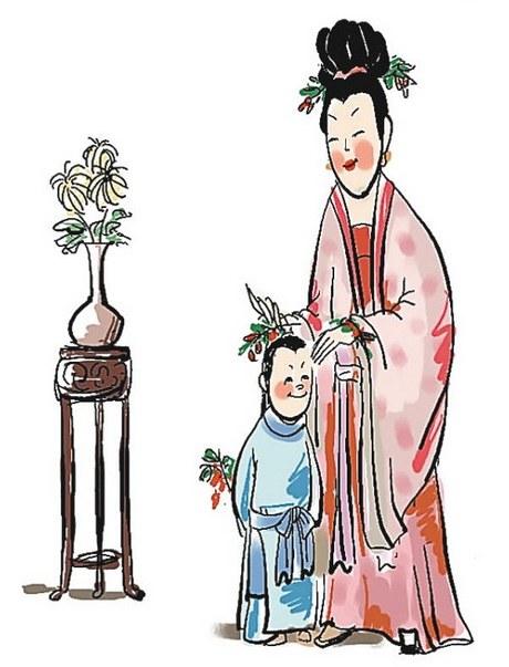 古代还风行九九插茱萸的习俗,所以又叫做茱萸节。茱萸入药,可制酒养身祛病。插茱萸和簪菊花在唐代就已经很普遍。茱萸香味浓,有驱虫去湿、逐风邪的作用,并能消积食,治寒热。