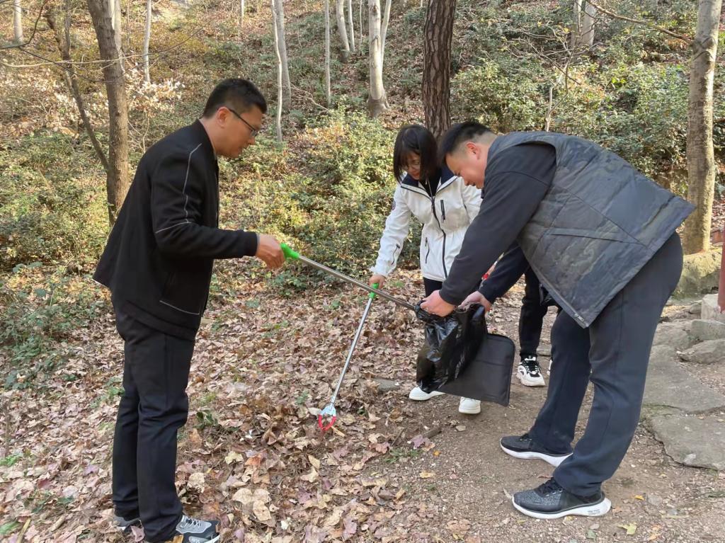 此外,为了让山上的环境保持干净整洁,弘扬绿色发展观,教职工们还用实际行动践行环保公益理念,边登山边拾起被丢在路边的垃圾,力争做碧水蓝天的保卫者、生态文明的实践者、美丽信阳的建设者。